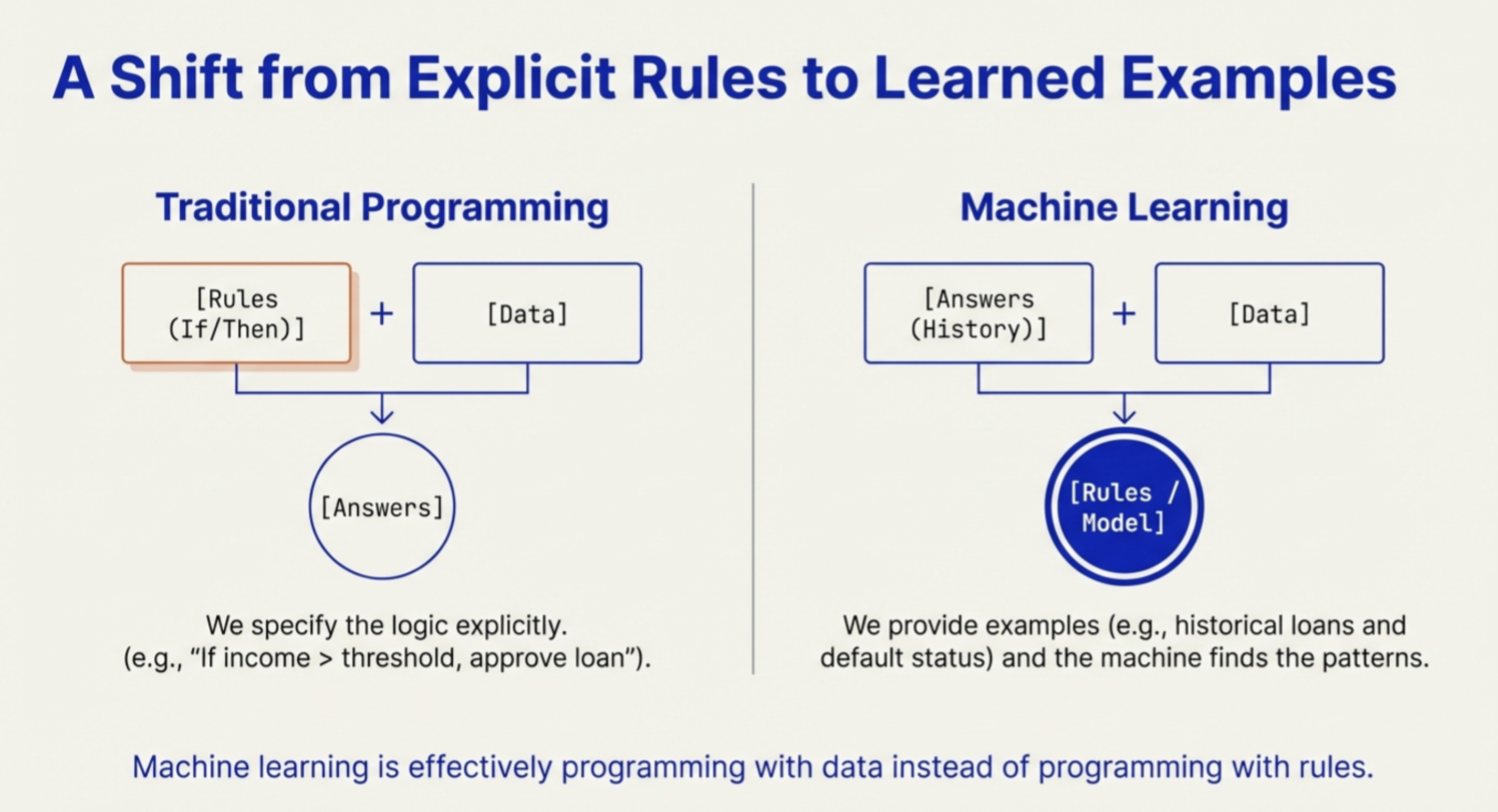 In traditional software, we specify logic explicitly: