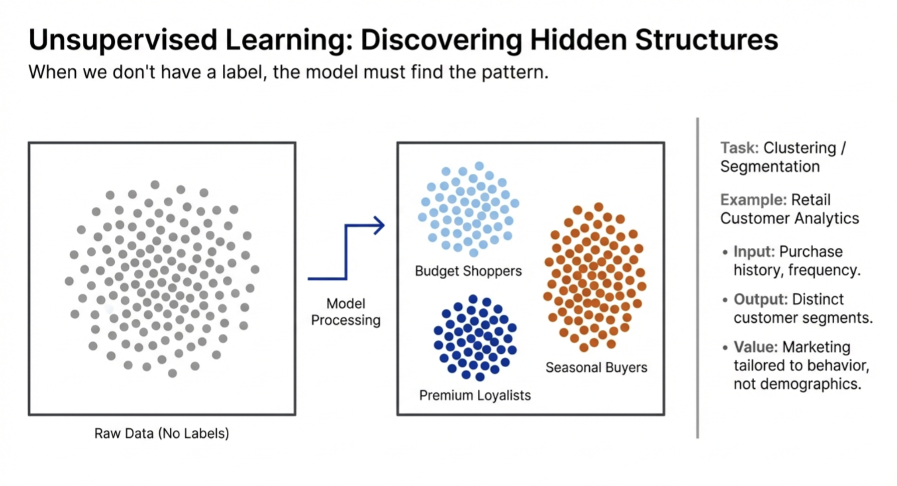 Instead, we want the model to group customers into segments: