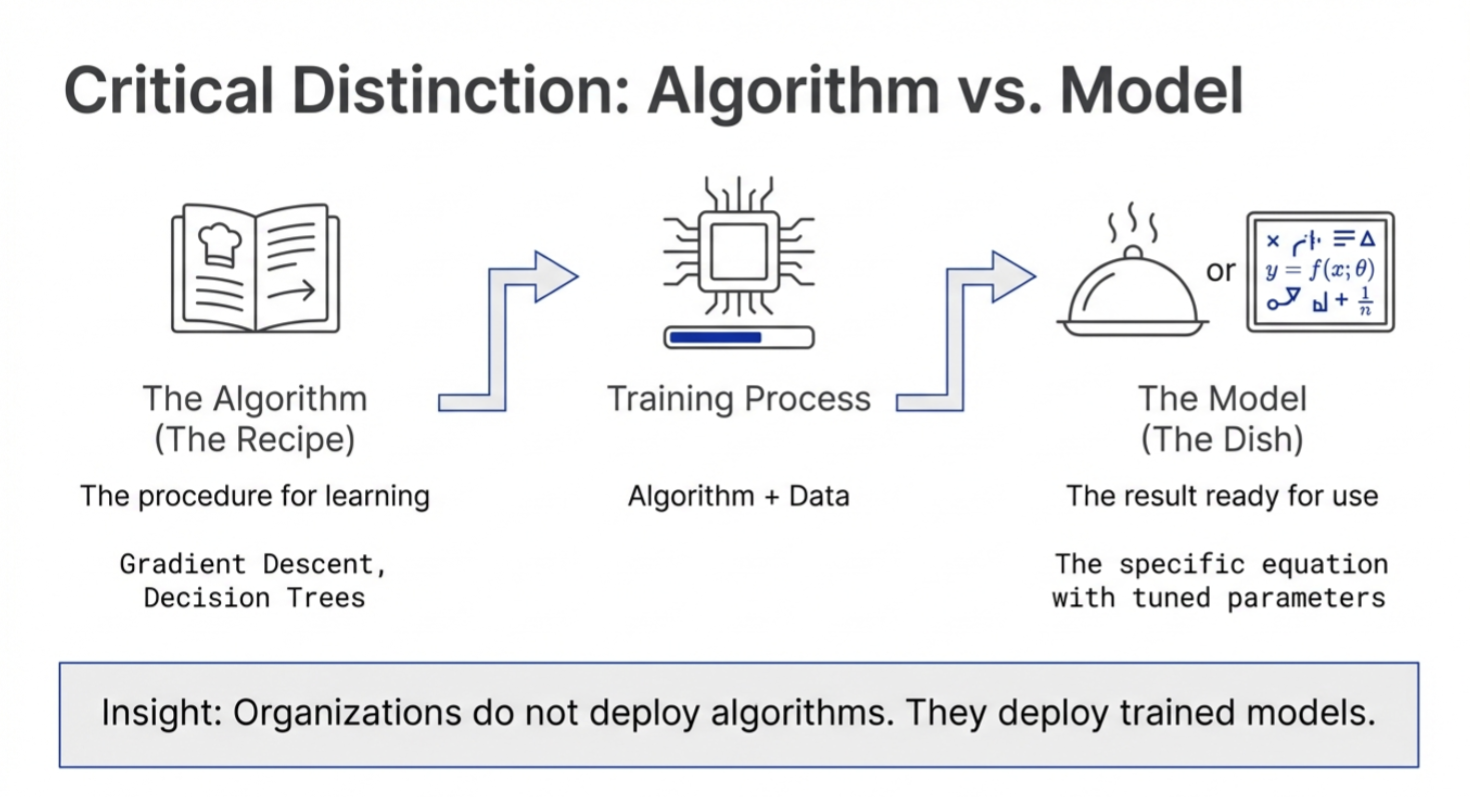 One of the most common confusions in machine learning is mixing up algorithms and models.